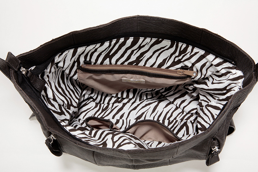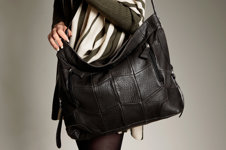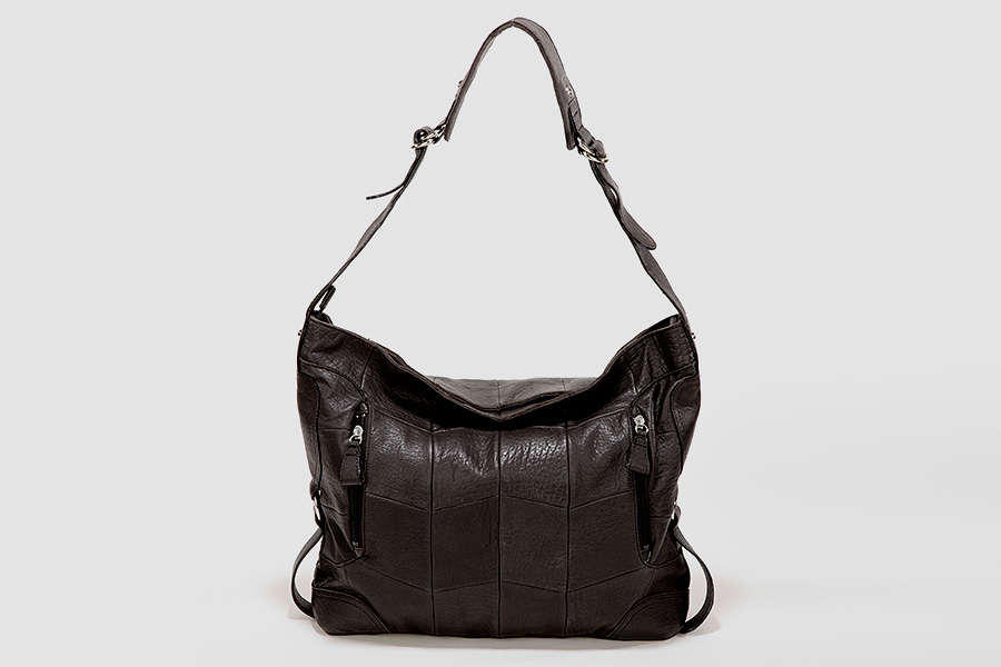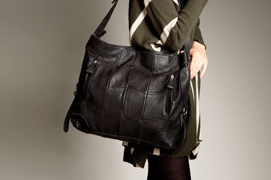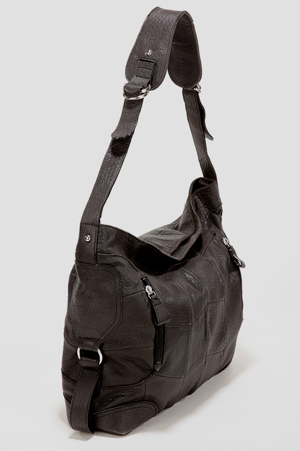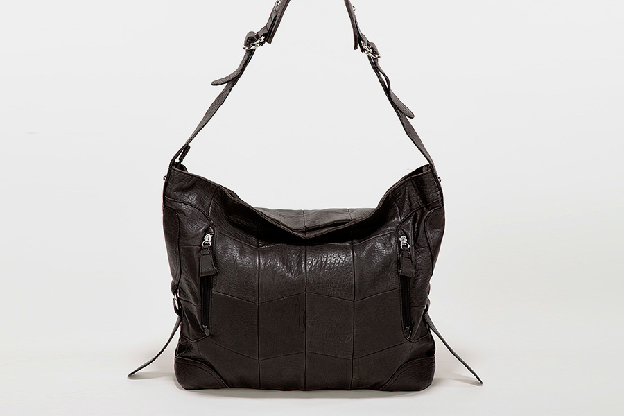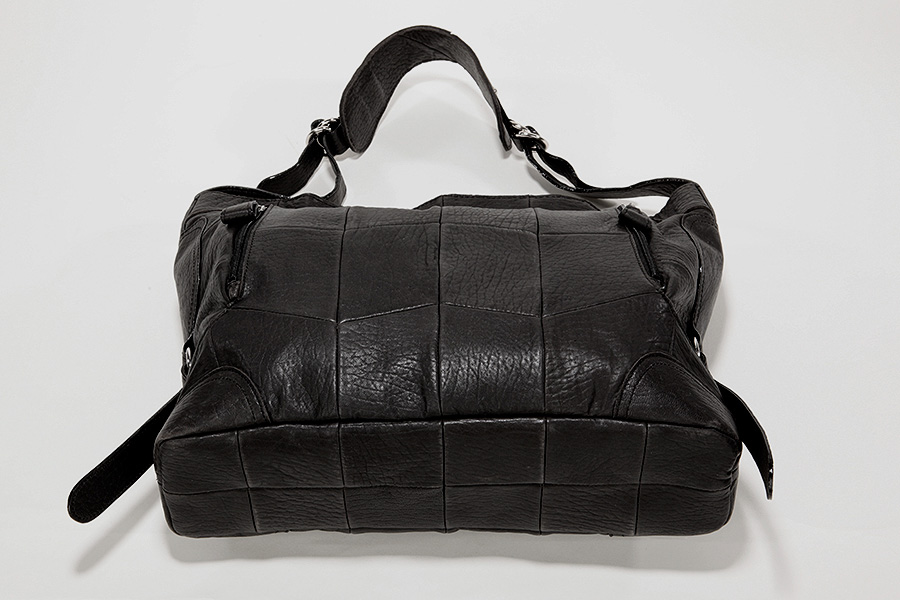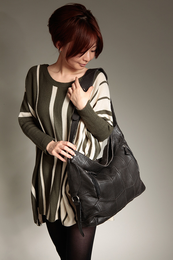 Pieces of sheepskin are luxuriously and fashionably sewed together like a patchwork. This semi-shoulder bag fits the body of the owner.