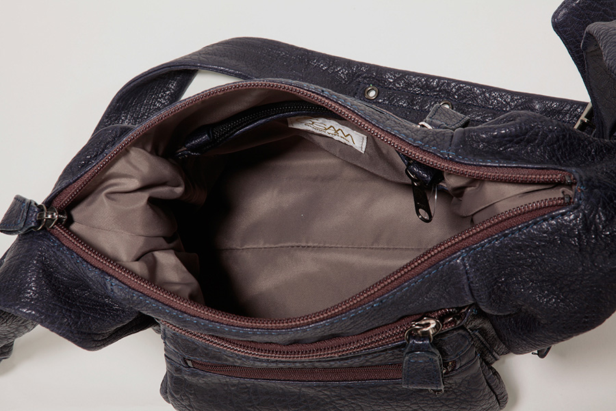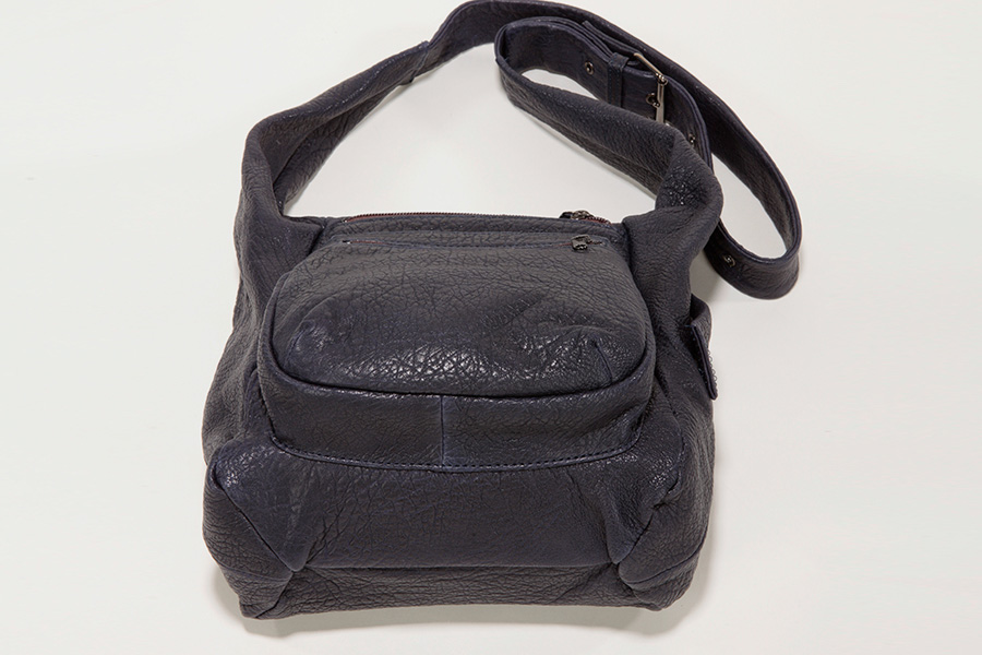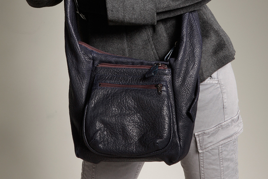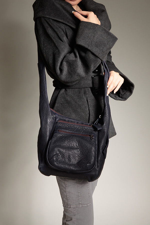 This light shoulder bag with a unique handle is