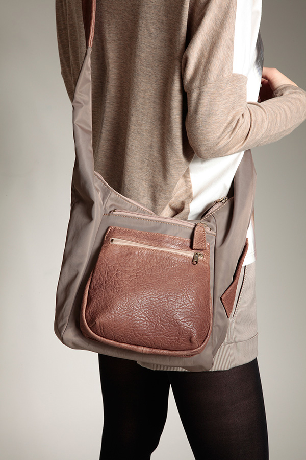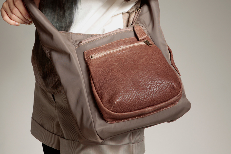 This light shoulder bag with a unique handle is suitable to carry for an autumn day off.